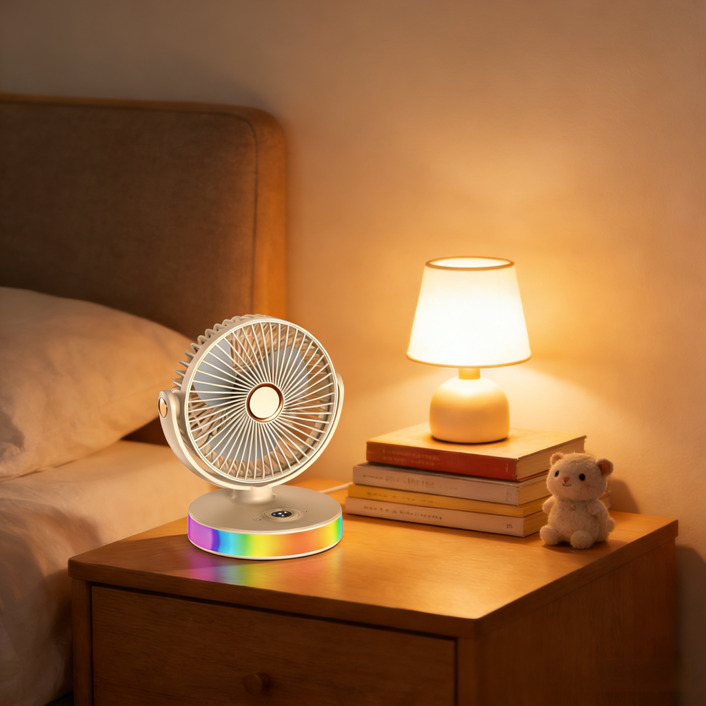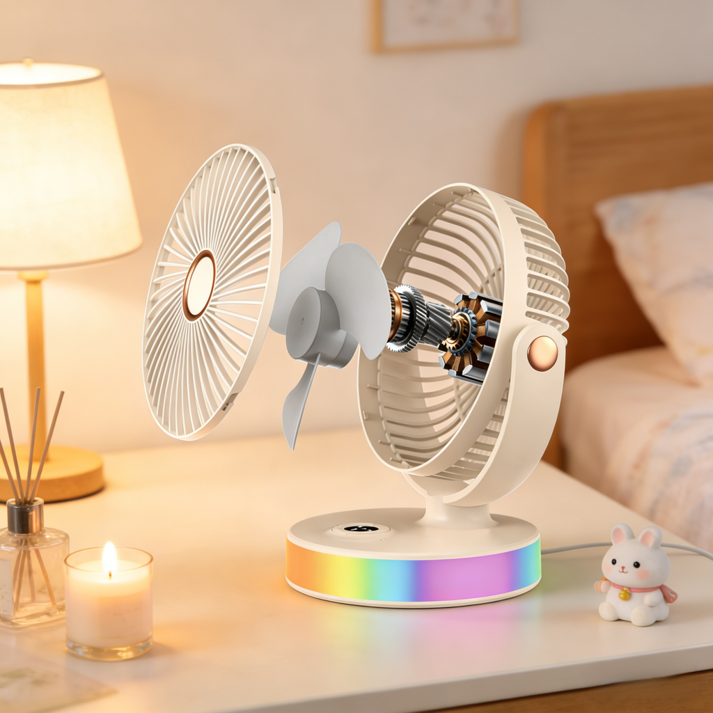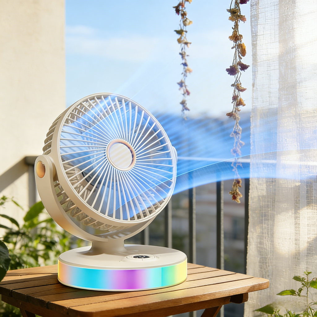 ● 角度調整可能な首振り機能搭載で、広範囲に涼しい風を届けるデスクファンです。