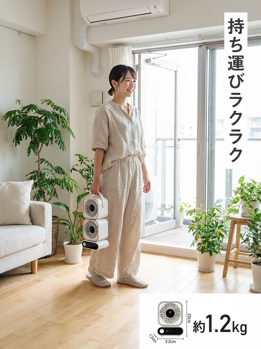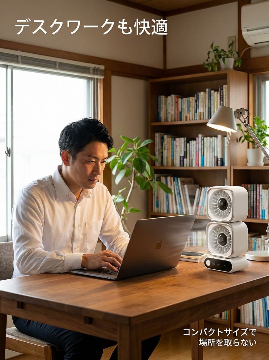 ● コンパクトなボディながら高い風量を実現、省スペースでリビングやオフィスにも最適です。