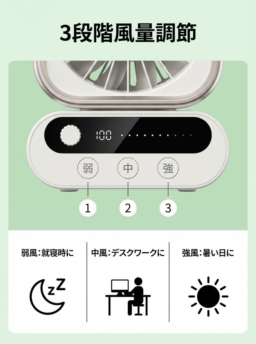 ● ターボモードで瞬時に強風切替可能、暑い日や換気時にも頼れる多機能ファンです。