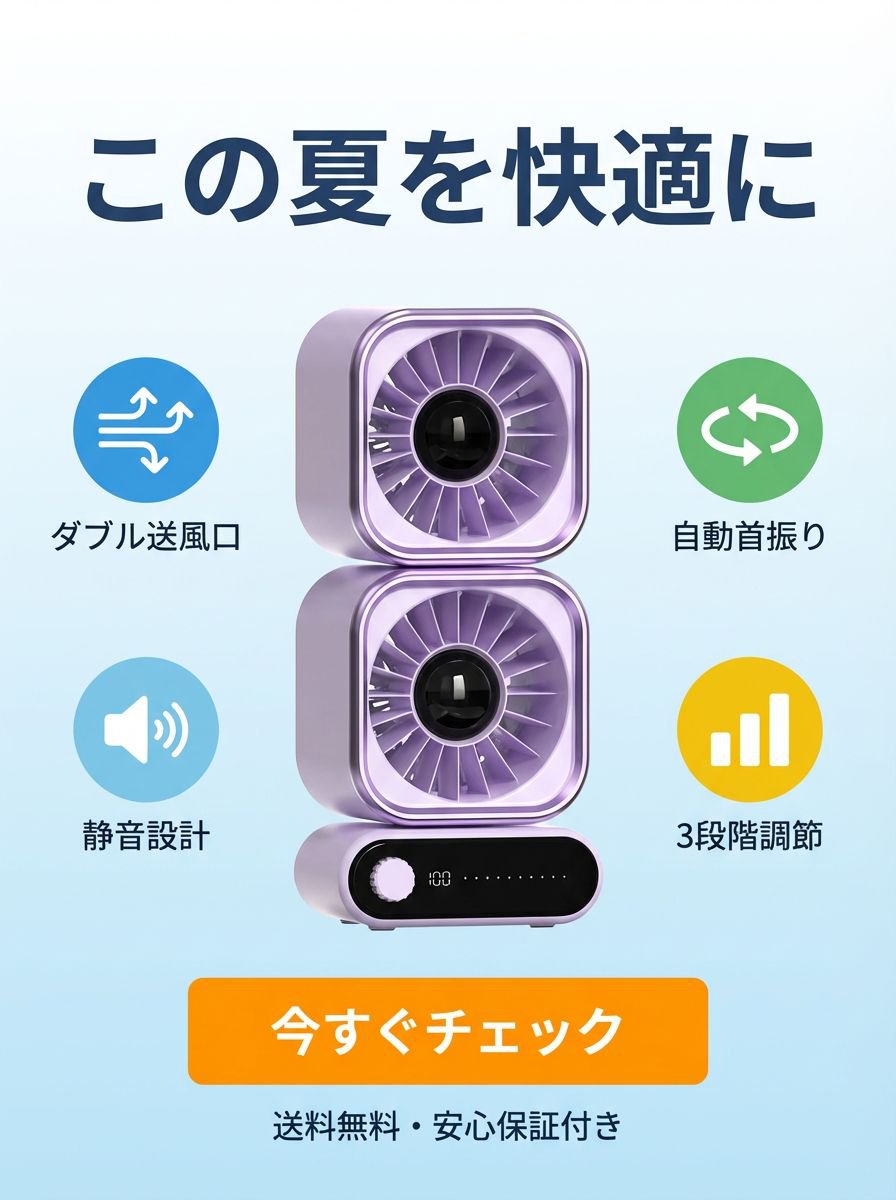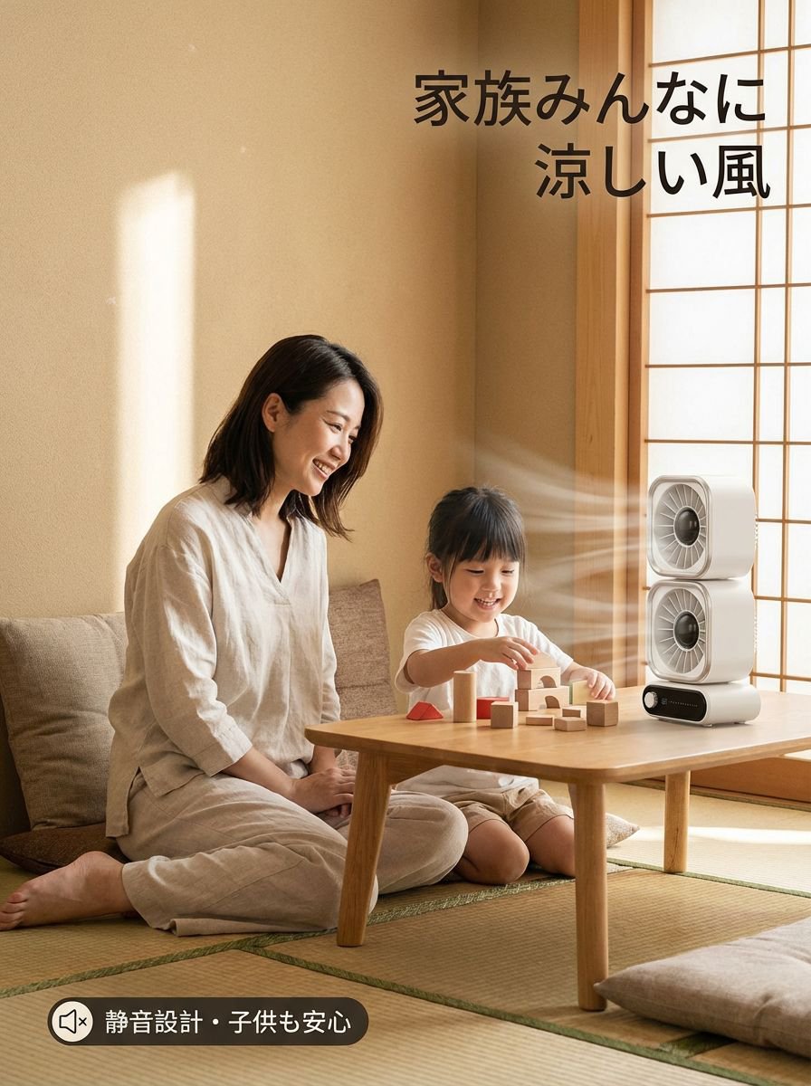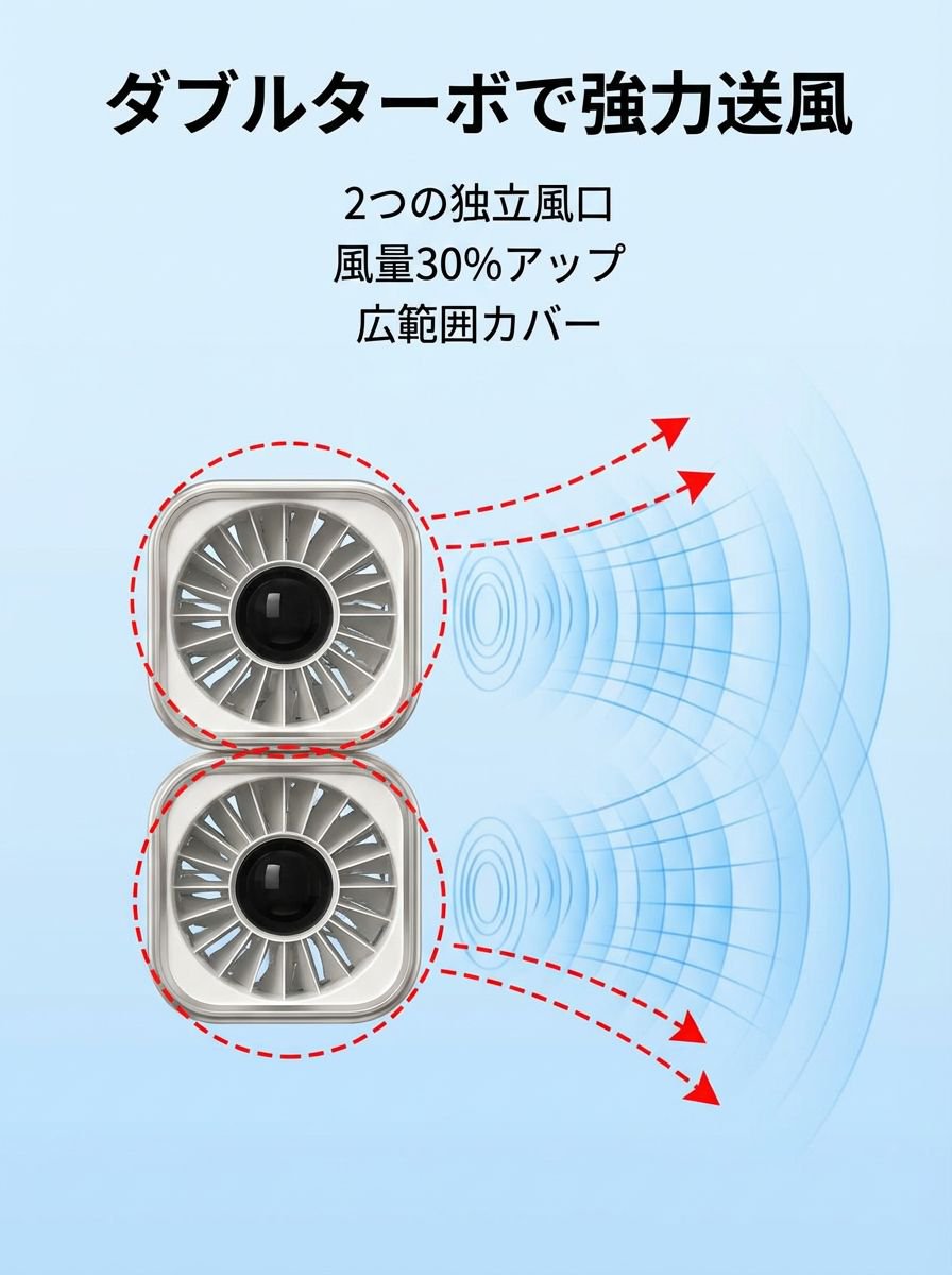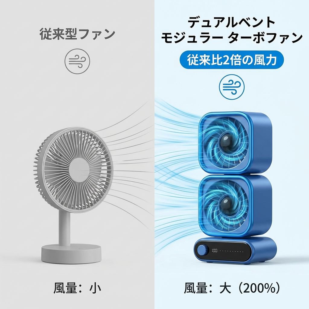 ● 強力なツイン吹出口設計で、広範囲にパワフルな風を素早く届け、部屋全体を効率よく涼しくします。